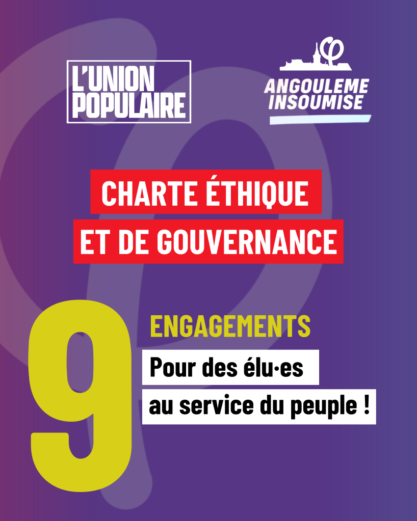 Chaque femme et chaque homme qui accepte d’être candidat·e sur la liste de l’Union populaire soutenue par la France Insoumise, est signataire de la Charte suivante.